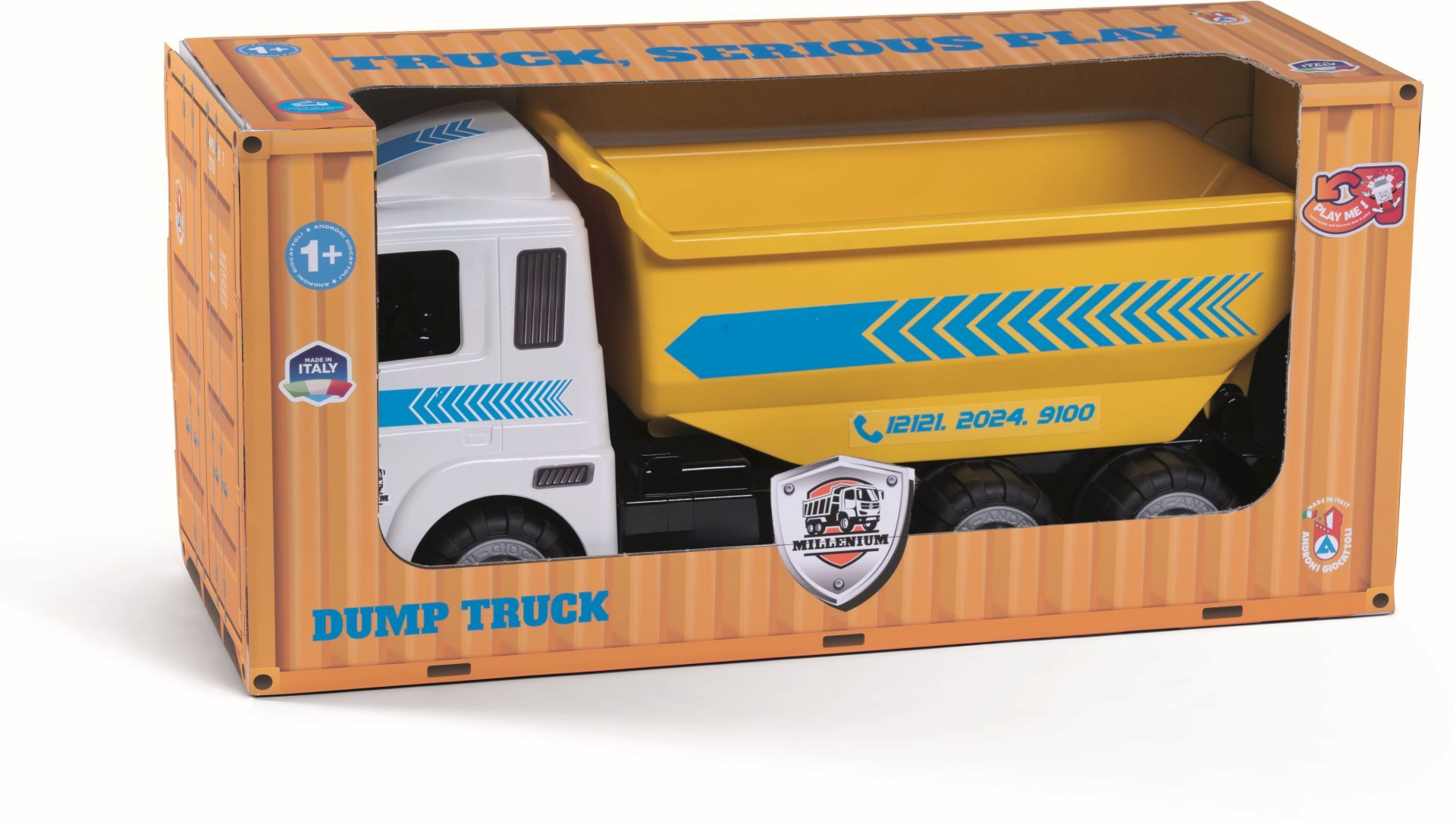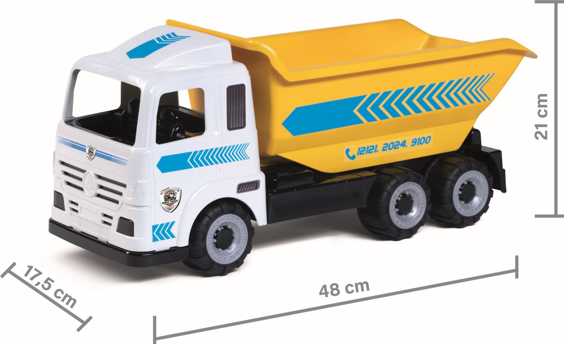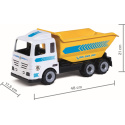 Velké funkční plastové auto sklápěč z řady Heavy Trucks s pogumovanými koly v otevřené krabici. Vyrobené z kvalitních plastů v Itálii. Rozměry balení: 49 x 18 x 22 cm (d x š x v). Váha: 1,21 kg. Doporučený věk od 12 měsíců.