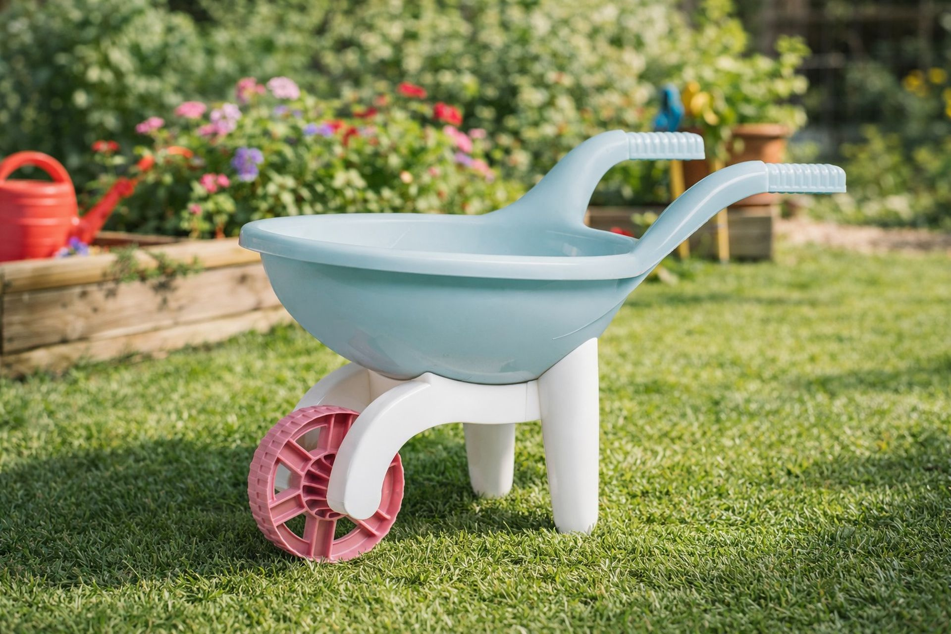 Plastové kolečko na zahradu i písek. Vyrobeno z kvalitních recyklovaných plastů v pastelových barvác