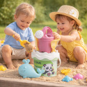 6dílná sada na písek, vyrobená z kvalitních recyklovaných plastů v pastelových barvách v Itálii. Obsahuje: Kyblík, konvičku 0,5 l, sítko, lopatku, hrabičky a tvořítko ve tvaru rybky. Kyblík: průměr 13 cm, výška 11 cm. Sada: výška 27,5 cm, váha 0,244 kg. Doporučený věk od 10 měsíců.