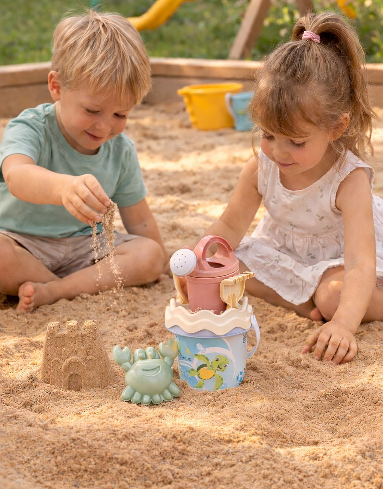 6dílná sada na písek, vyrobená z kvalitních recyklovaných plastů v pastelových barvách v Itálii. ObsVíce