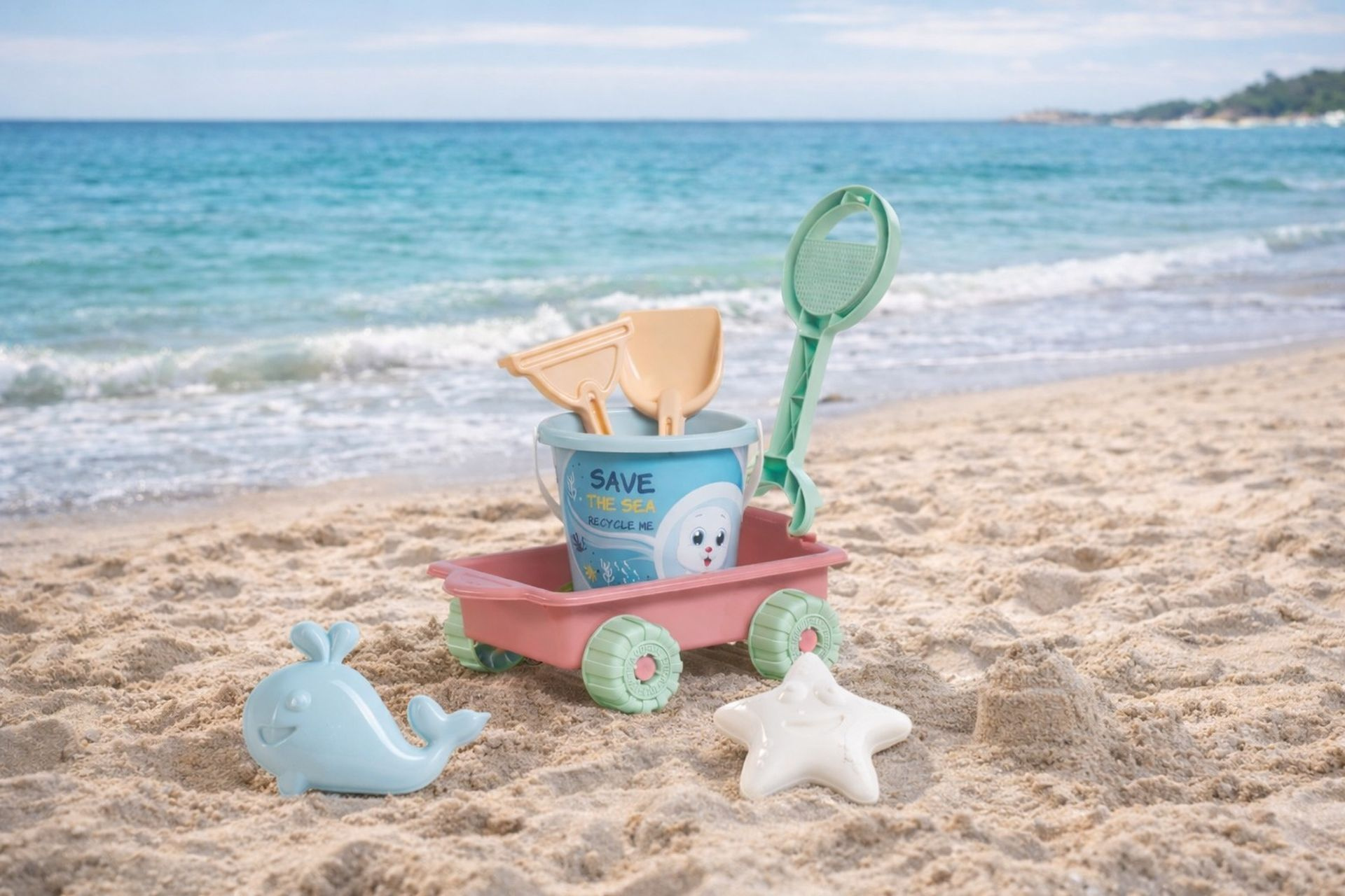 Popis Androni RECYKLACE PASTEL Sada na písek oceán s vozíkem