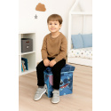 Praktický skládací úložný box s víkem s licenčním motivem potěší jistě každé dítě, které má rádo filmové postavičky a chce je mít na blízku. Slouží nejenom jako úložný box, ale zároveň i jako taburetka. Má pevné víko, díky kterému je vhodný i k sezení. Je to praktický doplněk do dětského pokoje, herny či koupelny. Může stát volně v prostoru a když se nepoužívá, lze ho jednoduše a rychle složit do plochého tvaru pro úsporu místa. Tvar krychle a standardní rozměry umožňují jeho vložení do většiny dřevěných organizérů. Pomáhá udržovat pořádek a usnadňuje přístup k oblíbeným hračkám a knihám. Využijte boxy k uskladnění plyšáků, autíček, stavebnic, menších hraček, knih atd. V nabídce Cozy Noxxiez najdete v mnoha případech ve stejném designu i jiné doplňky a můžete si vytvořit vlastní perfektně sladěnou kolekci, která bude ozdobou vašeho pokoje.