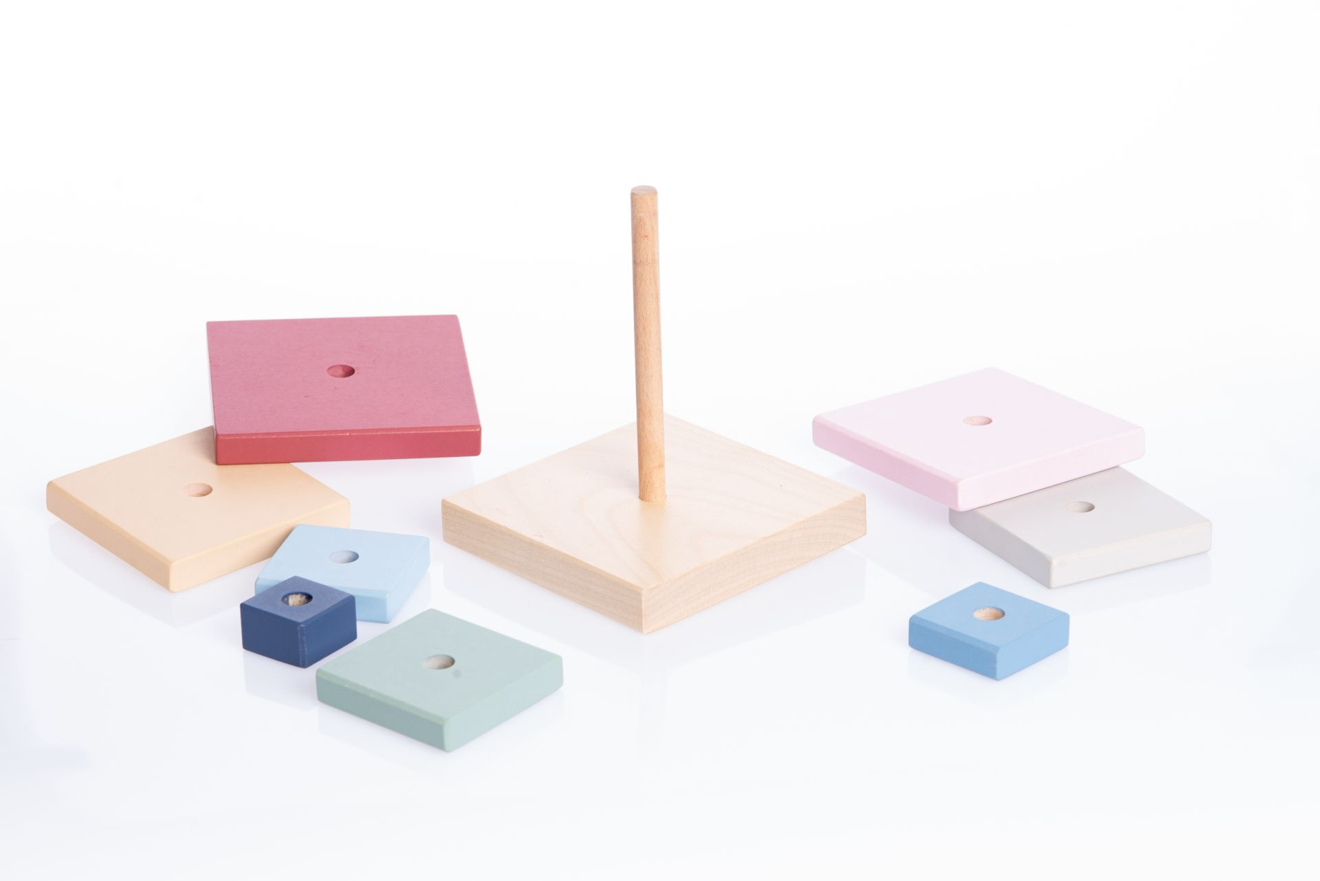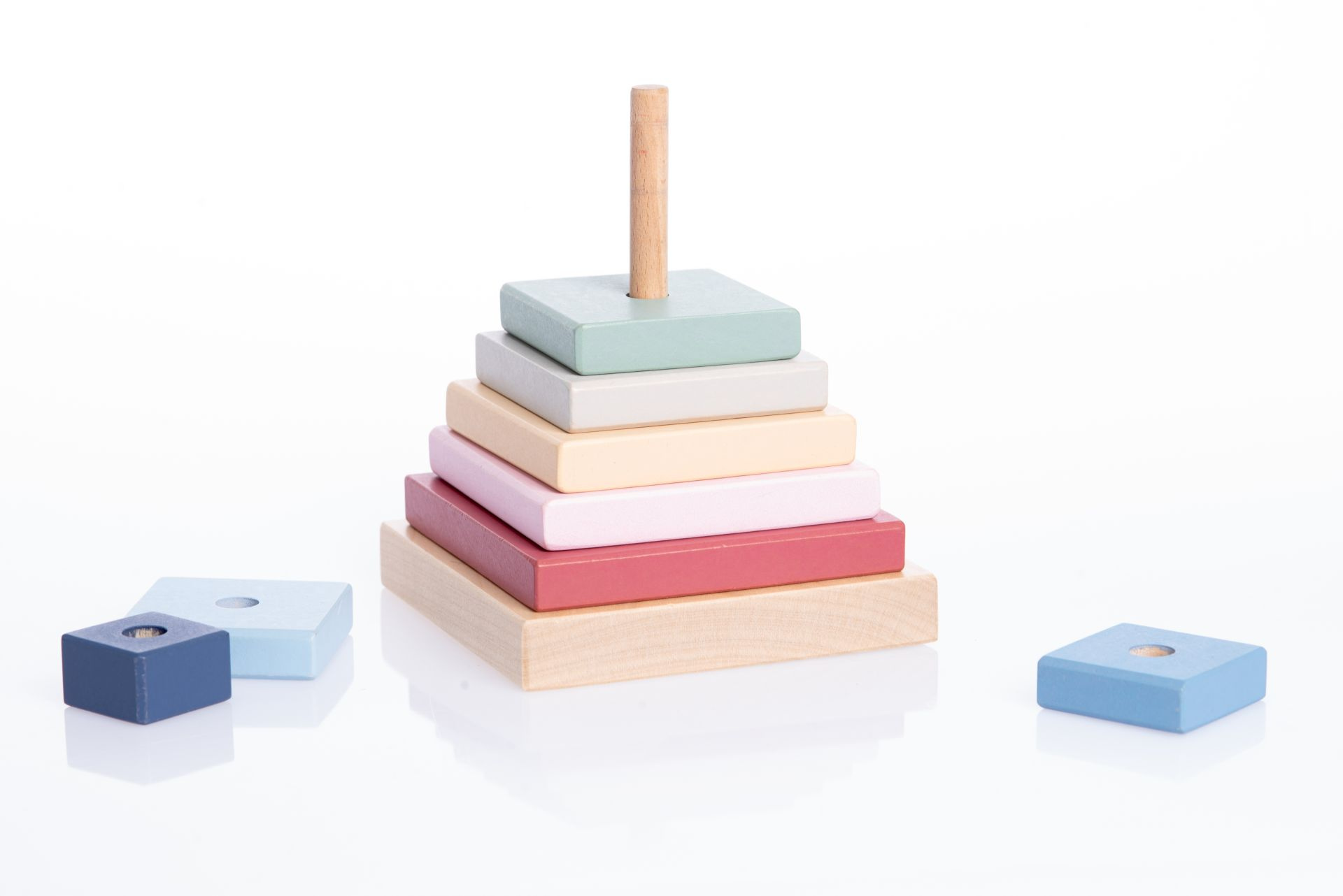 CUBIKA je nová značka dřevěných hraček vyrobených pouze z ekologicky pěstovaného dřeva s velmi precizním opracováním a líbivým designem a tento výrobek patří do nové kolekce vyrobené v pastelových barvách. Barevná pyramida je dřevěná skládačka s 9 díly, které by na sebe měly být poskládány tak, aby bylo možné zachovat při stavbě správný tvar starodávné egyptské pyramidy. Sortiment hraček značky CUBIKA pomáhá dětem rozvíjet především senzomotorické schopnosti a dovednosti, logické myšlení, kreativitu, představivost a různé poznávací znalosti. Hračky jsou vyrobeny z nejkvalitnějšího javoru a buku a k barvení se používají též vysoce kvalitní barvy na vodní bázi, které jsou naprosto bezpečné pro děti a nemají žádný zápach. Všechny výrobky této značky mají německý certifikát TÜV a jsou vyrobeny dle evropské normy pro bezpečnost hraček EN 71. Doporučený věk od 18 měsíců. Vyrobeno v Evropě.