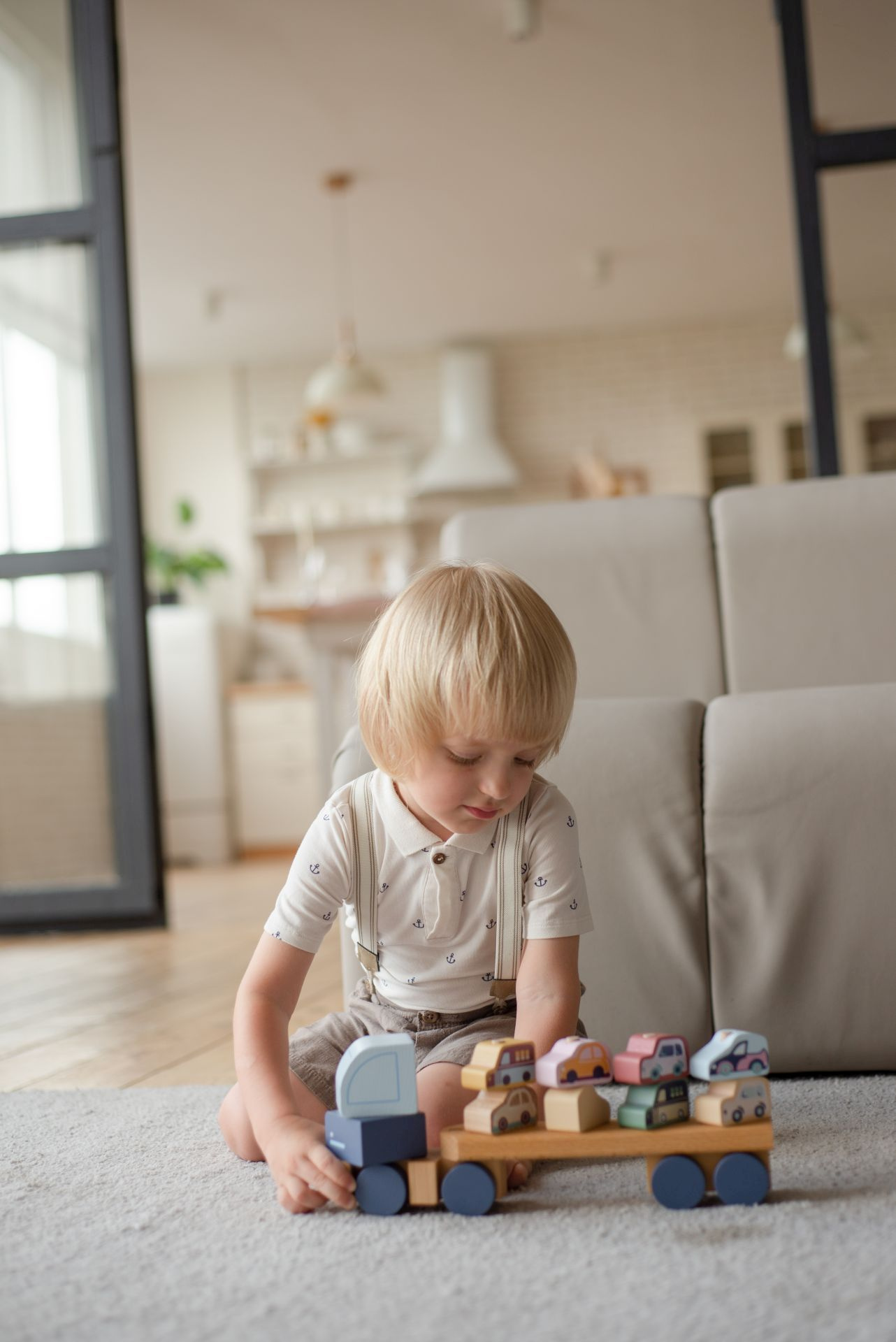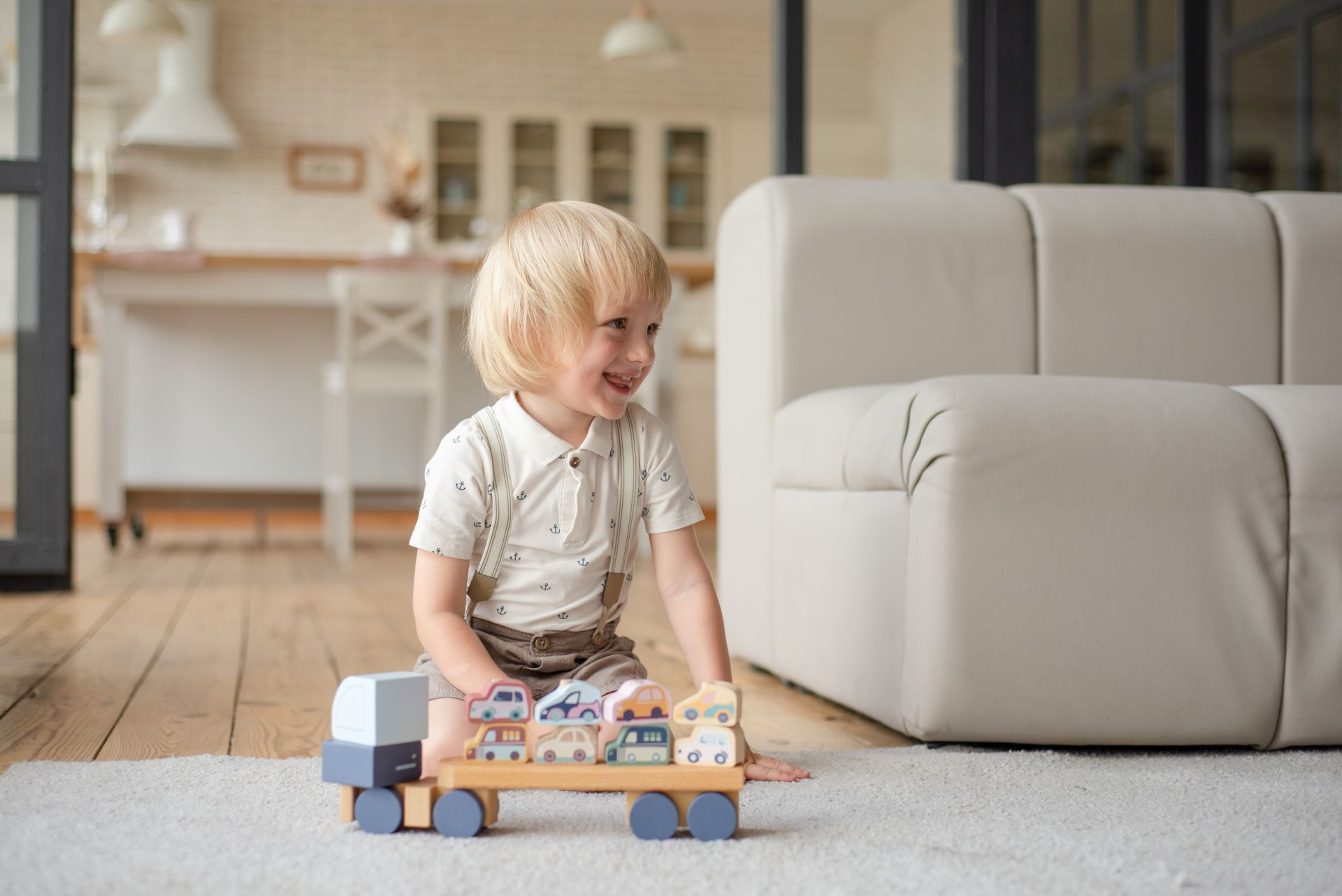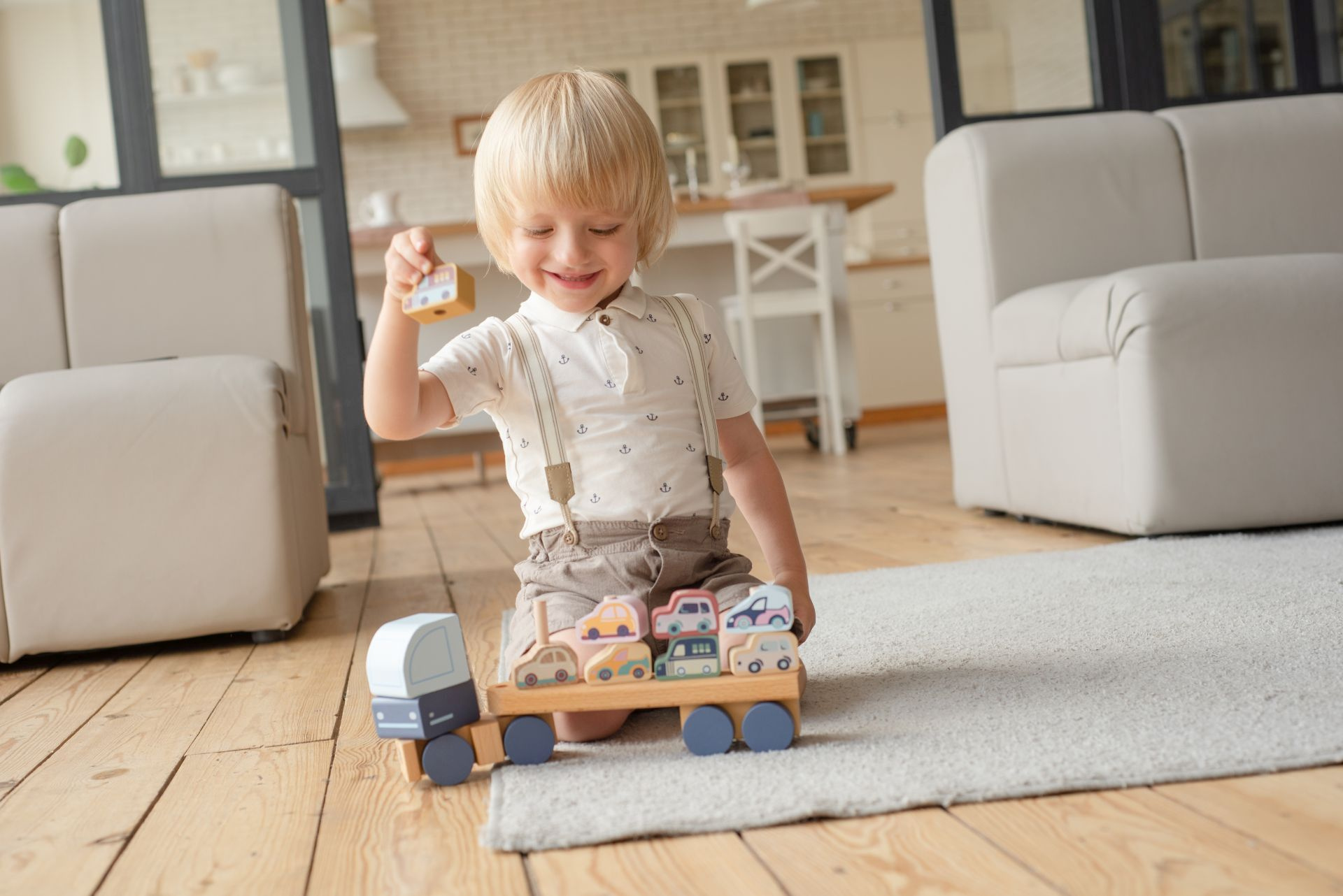 CUBIKA Pastel 15924 Kamion s auty - dřevěná skládačka 12 dílů