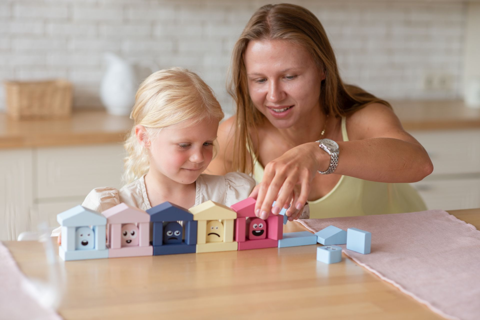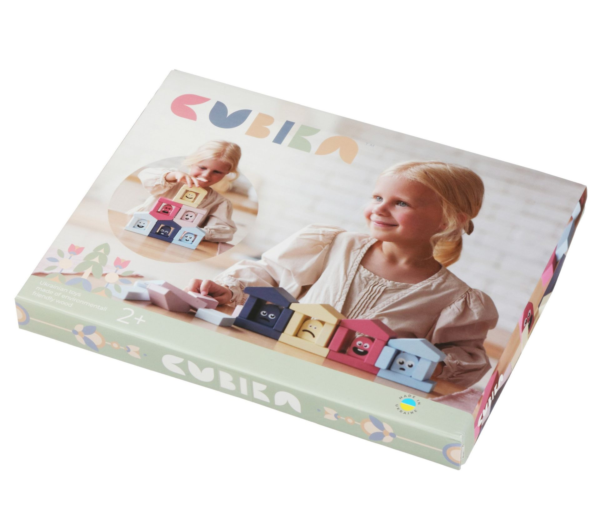 CUBIKA Pastel 15962 Barevné domečky - dřevěná stavebnice 30 dílů