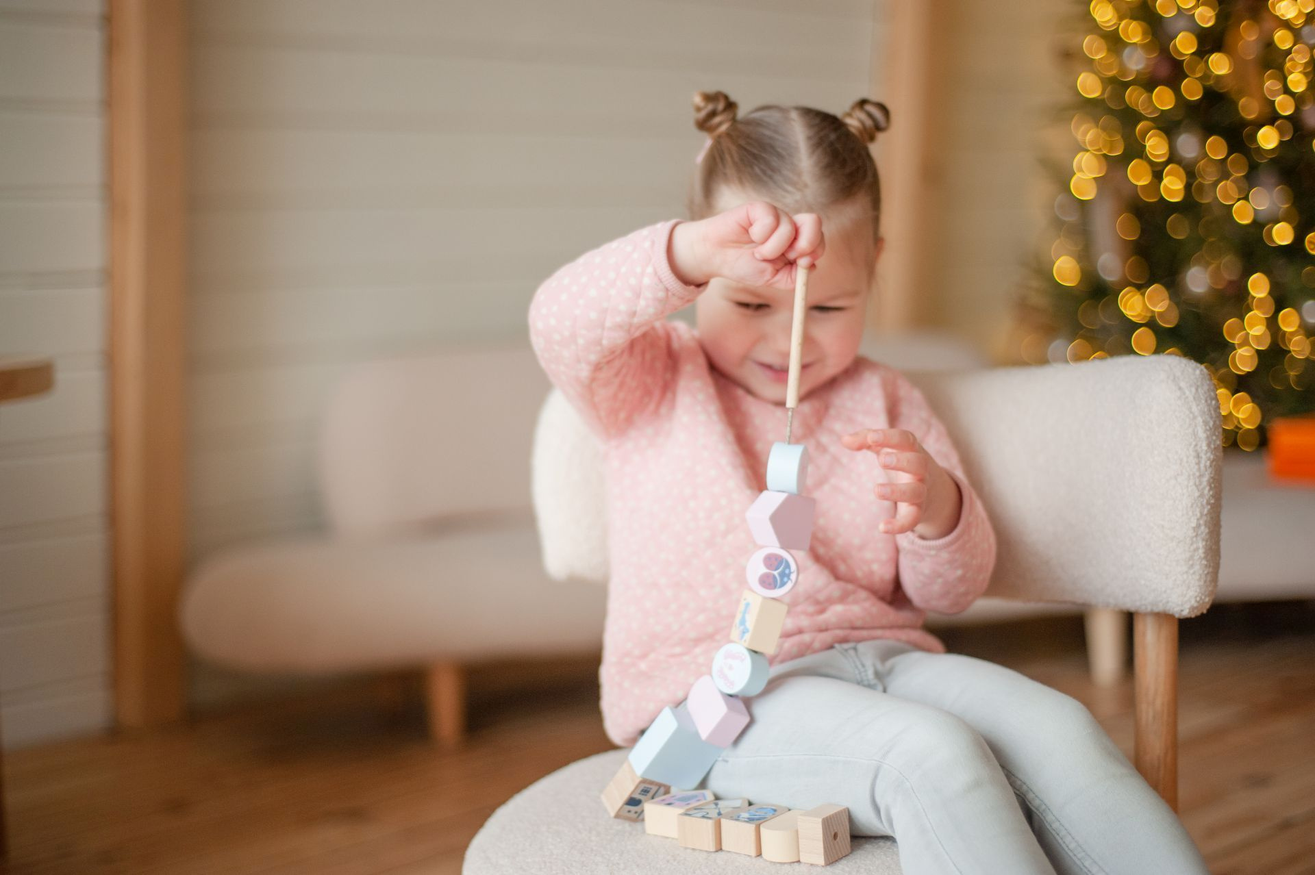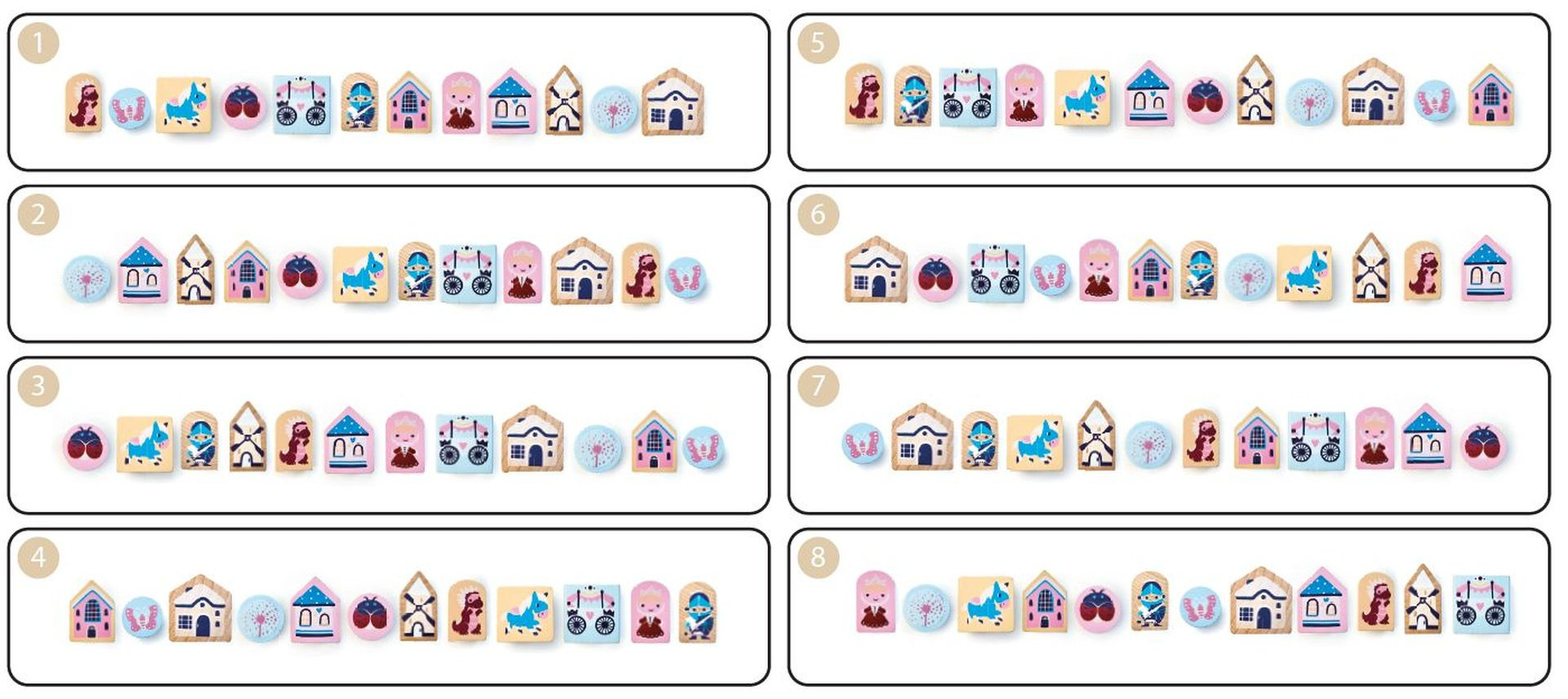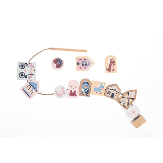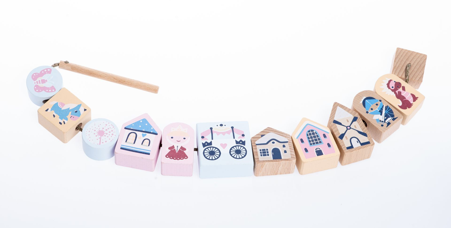 CUBIKA Pastel 16013 Navlékací pohádka - navlékací set - 13 dřevěných dílů a 8 předloh