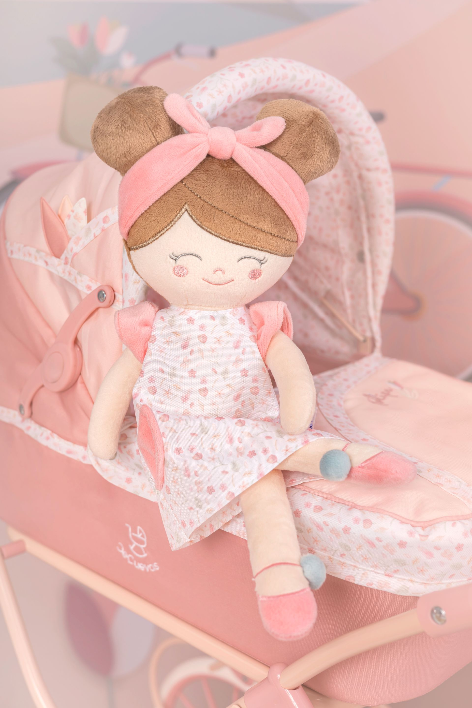 DeCuevas 21074 Plyšová panenka Tulipe 2025 - 36 cm je malá slečna ze stejnojmenné kolekce, která je novinkou roku 2025. Tulipe je, jak již sám název napovídá, kolekce plná tulipánů v překrásně sladěných teplých pastelových lososových barvách. Světlejší a tmavší odstíny barev jsou vkusně doplněné drobným květinovým vzorem ve stejných tónech na bílosmetanovém podkladu. Tento motiv ještě navíc u kočárků umocňují svým tematickým tvarem i překrásné, jako tulipán vypadající tašky. Květ tulipánu zdobí i dřevěné výrobky této kolekce. Panenka je vyrobena z vysoce kvalitního hladkého lesklého plyše a je pratelná (ručně na 30 °C). Díky své velikosti a nízké váze je ideální společnicí každé malé holčičky nejenom na cestách, ale díky měkkému materiálu je příjemná i na mazlení do postýlky. Panenka je balena v igelitovém obalu. Velikost 36 cm. Doporučený věk od 12 měsíců.