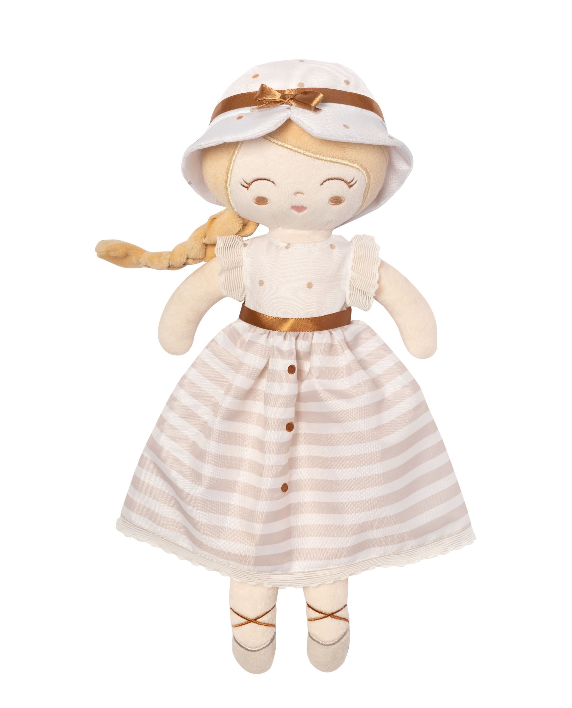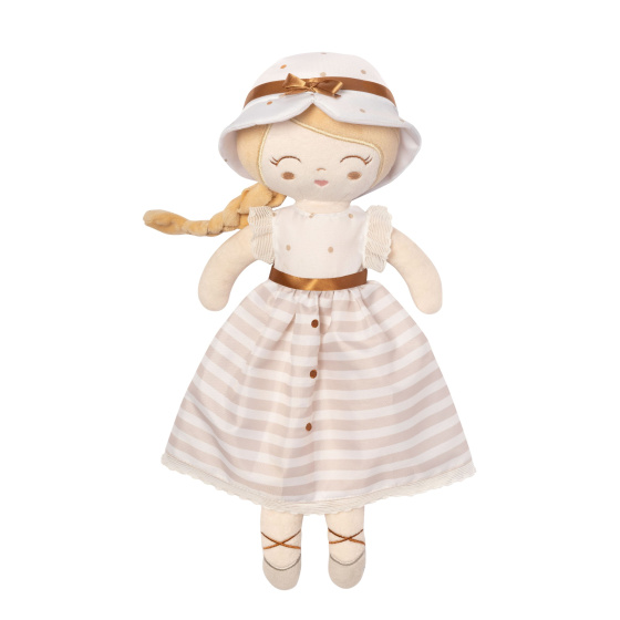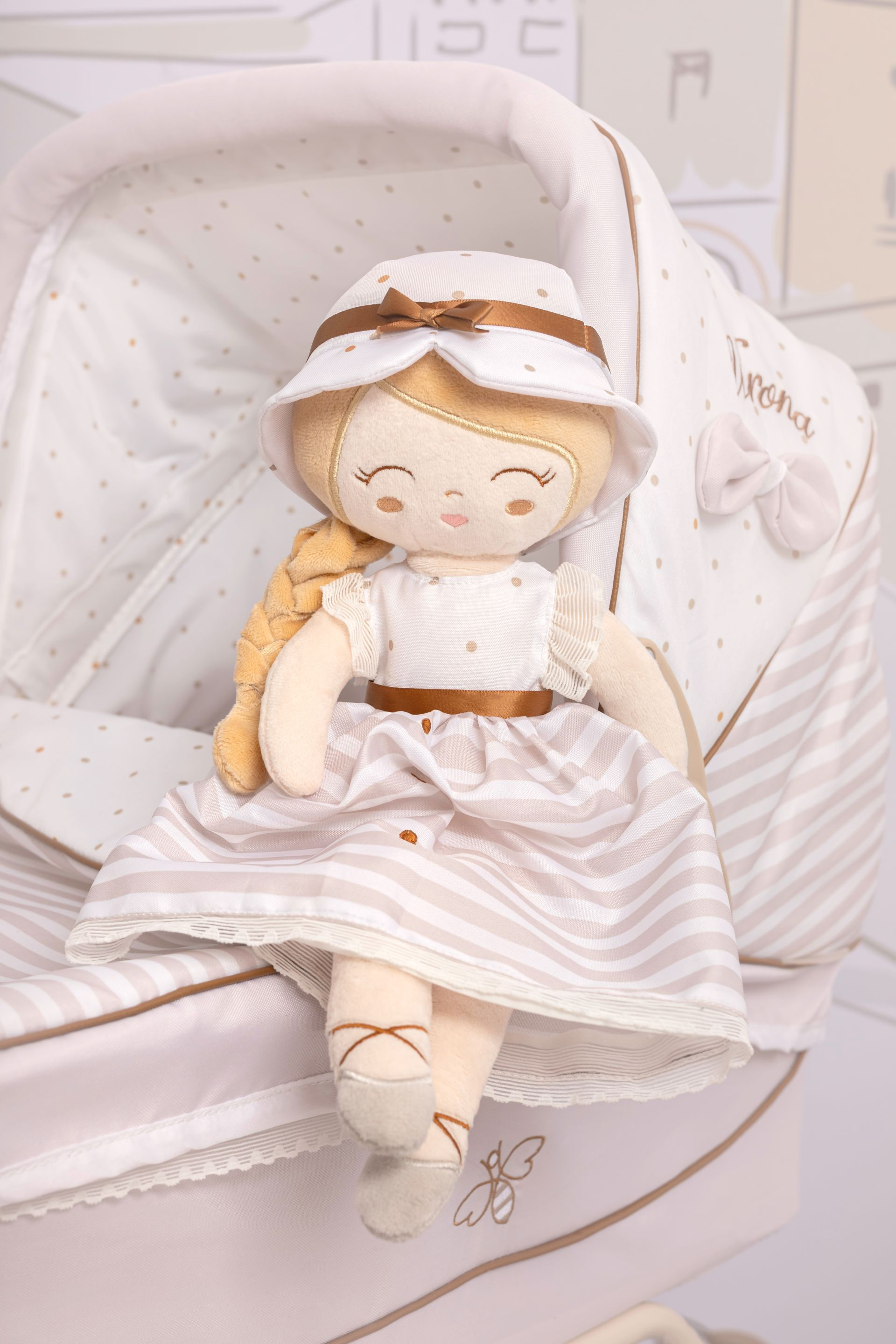DeCuevas 21078 Plyšová panenka Verona 2025 - 36 cm je malá slečna ze stejnojmenné, velmi úspěšné kolekce z roku 2024. Tato decentní kolekce je celá nesena v jemných pastelových přírodních barvách i vzorech. Kombinace světle béžové a bílé s roztomilými puntíky nebo proužky doplňuje světle hnědé úzké lemování, které zdůrazňuje dokonalost tvarů a krásně ladí s hnědými madly kočárků. Přírodní styl kolekce podtrhují aplikace mašliček zobrazující okvětní lístky a drobné výšivky včeliček. Panenka je vyrobena z vysoce kvalitního hladkého lesklého plyše a je pratelná (ručně na 30 °C). Díky své velikosti a nízké váze je ideální společnicí každé malé holčičky nejenom na cestách, ale díky měkkému materiálu je příjemná i na mazlení do postýlky. Panenka je balena v igelitovém obalu. Velikost 36 cm. Doporučený věk od 12 měsíců.