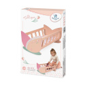 DeCuevas 55174 Dřevěná kolébka pro panenky Tulipe 2025 ze stejnojmenné kolekce, která je novinkou roku 2025, jistě zaujme svým designovým provedením, které je velmi nápadité. Obě čela kolébky jsou ve tvaru květu tulipánu a díky jeho jemným pastelovým barvám je tato kolébka krásným doplňkem dívčího pokojíčku a potěší jistě každou malou slečnu. Tulipe je, jak již sám název napovídá, kolekce plná tulipánů v překrásně sladěných teplých pastelových lososových barvách. Světlejší a tmavší odstíny barev jsou vkusně doplněné drobným květinovým vzorem ve stejných tónech na bílosmetanovém podkladu. Tento motiv ještě navíc u kočárků umocňují svým tematickým tvarem i překrásné, jako tulipán vypadající tašky. Květ tulipánu zdobí i dřevěné výrobky této kolekce. Tato kolekce nabízí výběr výrobků od jídelních sad přes postýlky a kočárky až po dřevěný nábytek pro panenky. Nádherný španělský design, precizní zpracování. Materiál: MDF, masivní dřevo, kov. Baleno v krabici v barvách kolekce. Doporučený věk od 3 let.