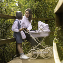 DeCuevas 80078A Skládací kočárek pro panenky s taškou Verona 2025 - 81 cm patří do stejnojmenné, velmi úspěšné kolekce z roku 2024, která nabízí nejen zmíněné kočárky, ale i jiné doplňky pro malé slečny a jejich panenky. Tato decentní kolekce se celá nese v jemných pastelových přírodních barvách i vzorech. Kombinace světle béžové a bílé s roztomilými puntíky nebo proužky doplňuje světle hnědé úzké lemování, které zdůrazňuje dokonalost tvarů a krásně ladí s hnědými madly kočárků. Přírodní styl kolekce podtrhují aplikace mašliček zobrazující okvětní lístky a drobné výšivky včeliček.