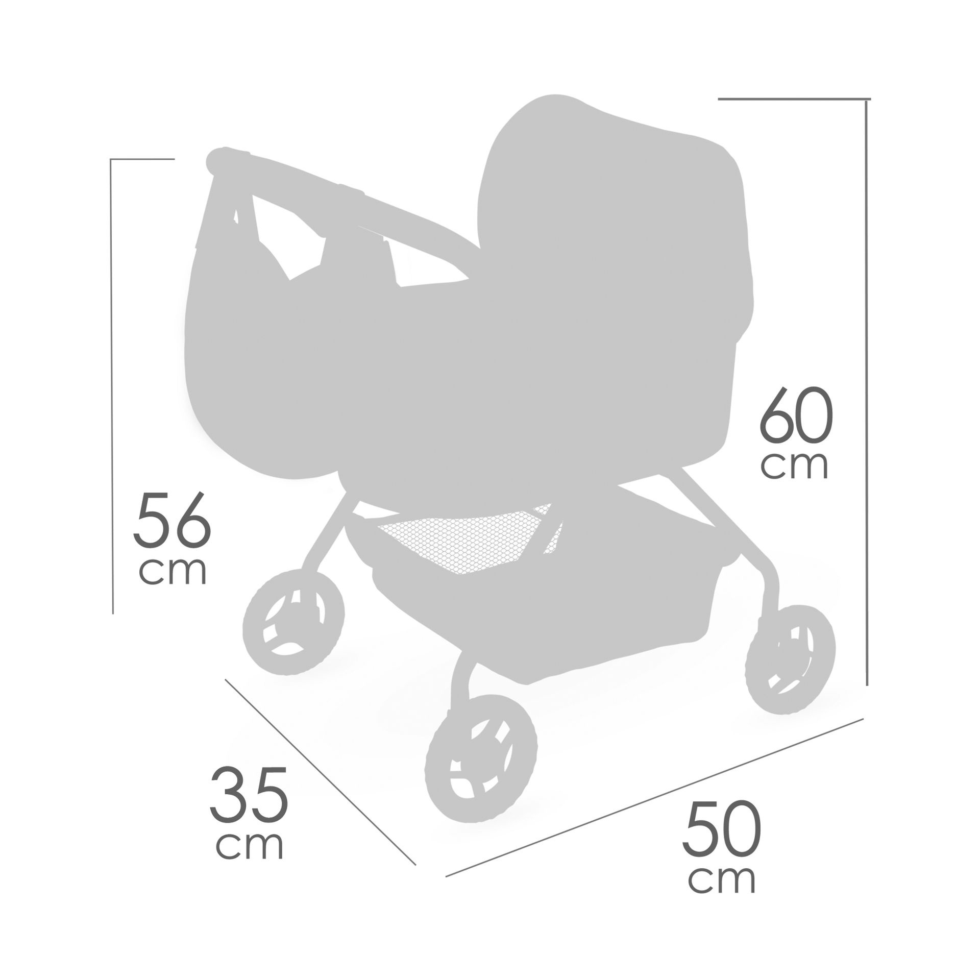 • Rozměry kočárku: 50 × 35 × 60 cm (celková výška kočárku)