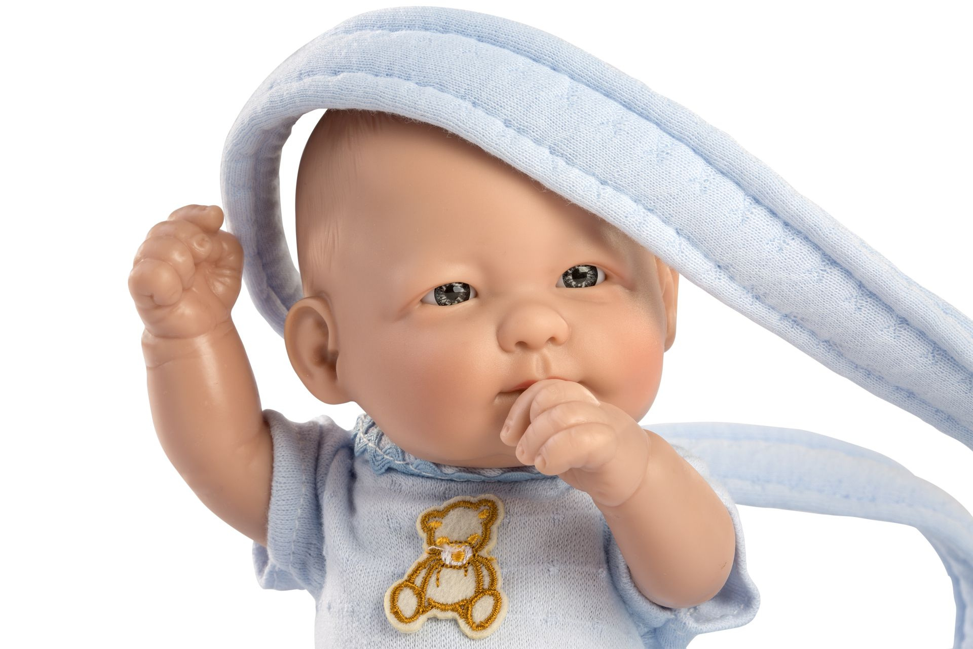 Miminko bez zvuku s vinylovým tělem s možností koupání, na kterém je zachycen doslova každý detail dětského tělíčka včetně roztomilých miminkovských faldíků a pohlaví. Ruce a nohy jsou k tělu přichycené kloubem. Miminko je polohovací a může i sedět. Velikost 25 cm. Ručně vyrobeno ve Španělsku, baleno v dárkové krabici. Doporučený věk od 3 let.