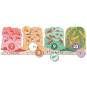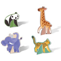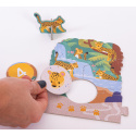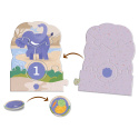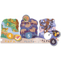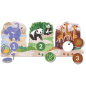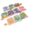 Originální hra pro děti, která spojuje puzzle, logické třídění a první počítání. Děti skládají 10 zvířecích výběhů a přiřazují k nim žetony se stopami, krmením nebo číslicemi.