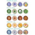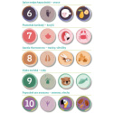 Sada představuje 10 zvířátek, která můžeme navštívit v ZOO. V každém „výběhu“ je určitý počet zvířátek. Pod výběhem je místo na umístění žetonu. Správné umístění žetonů je jedním z mnoha úkolů dítěte. Děti přiřazují žetony s číslicemi, stopami, krmením nebo samostatnými zvířátky. Součástí jsou 4 zvířecí figurky pro další hraní. Extra velké kartičky z 2 mm silného kartonu se snadno drží i těm nejmenším – hra je ideální pro malé dětské ručičky. Vodítek pro správné pořadí podle počtu zvířátek je několik. Učte děti vnímat, že počet zvířátek ve výběhu je stejný jako počet stop ve spodním dílku puzzle. Děti můžete učit správně počítat pomocí zvířátek ve výběhu. Můžete například ukazovat na prstech ruky počet zvířátek ve výběhu a potvrdit si, že počet prstů je stejný jako počet stop. Učte děti tyto počty správně pojmenovat. Krmení zvířátek: nachystejte si žetony s různou potravou. Žetony mají z jedné strany různé druhy potravy a na rubu hlavičky zvířátek. Stranu s hlavičkami můžete použít jako nápovědu pro správné umístění potravy.