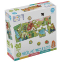 • 4 velká desetidílná puzzle (jaro, léto, podzim, zima) – celkem 40 dílků, velikost každého puzzle 35 × 16 cm
