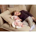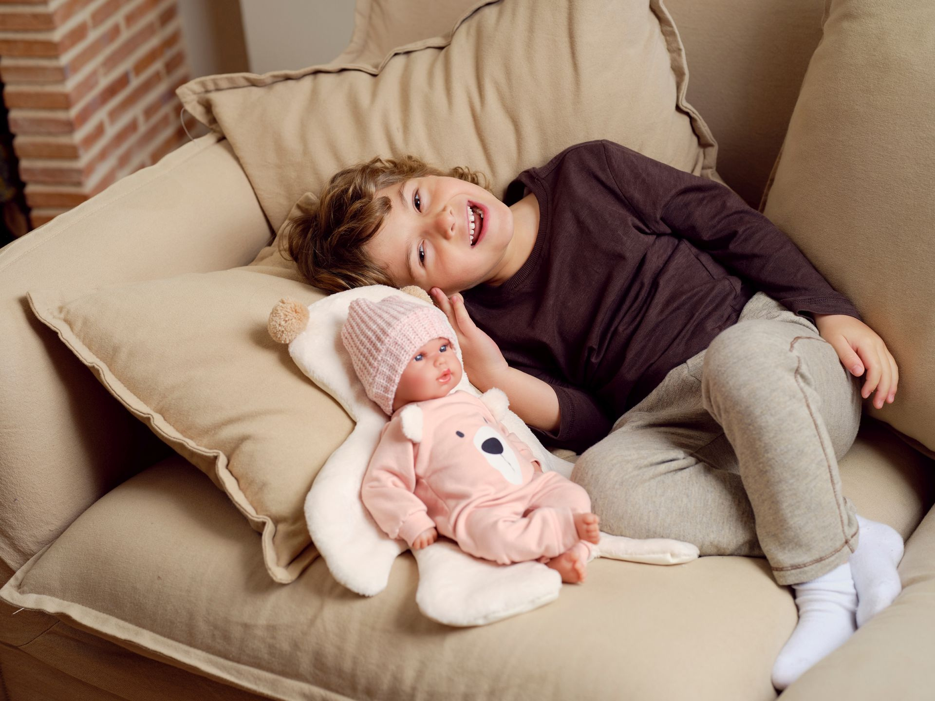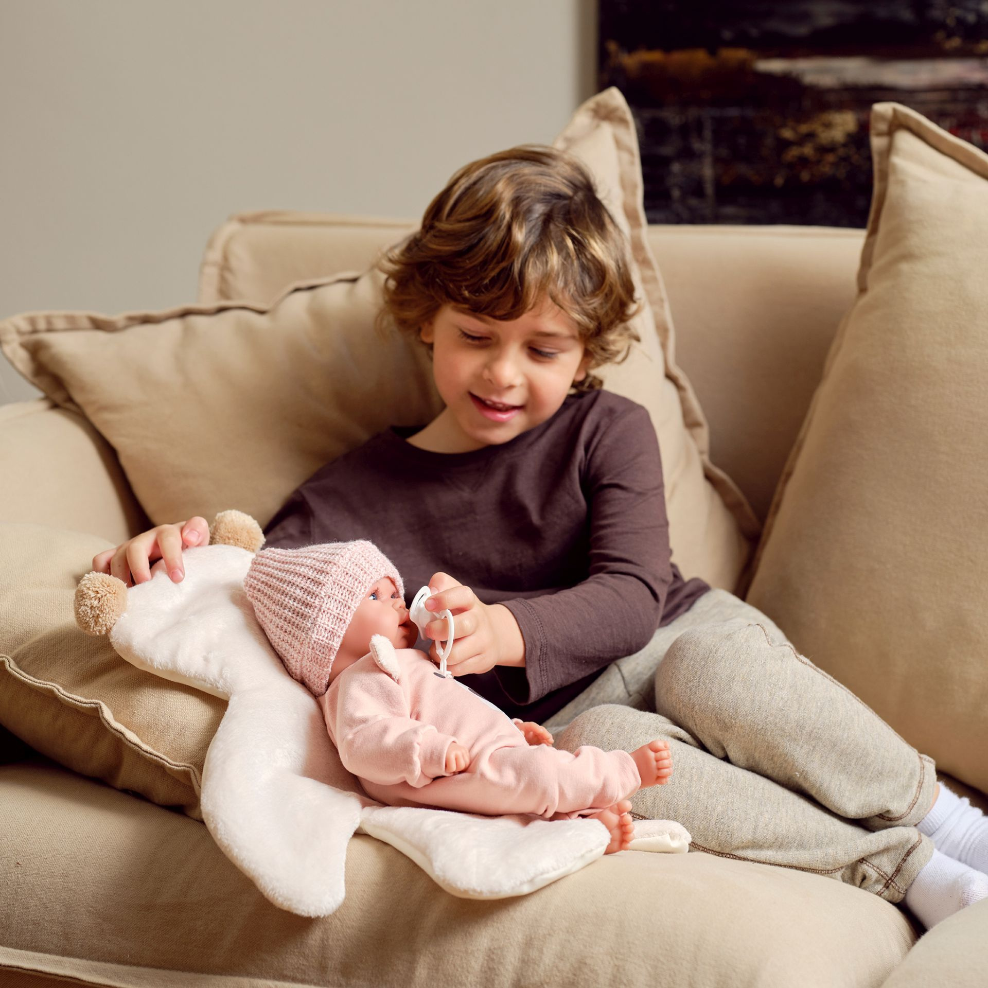 Mluvící miminko s měkkým látkovým tělem, které po zatlačení na hrudník začne říkat „mama“, „papa“ a vydávat reálný zvuk plačícího miminka. Ruce a nohy jsou k tělu přichyceny kloubem. Miminko je polohovací a může i sedět. Dudlík v balení slouží pouze jako doplněk. Velikost 36 cm. Ručně vyrobeno ve Španělsku, baleno v dárkové krabici. Doporučený věk od 3 let. K miminku je možné dokoupit další originální oblečení z nabídky Llorens pro pmiminka NEW BORN velikosti 35-36 cm. Součástí balení je 3 x knoflíková baterie LR44 s návodem na její výměnu. Baterie jsou spotřební zboží a proto jejich vybití není důvodem k reklamaci panenky.