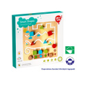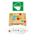 Geometrické tvary s předlohami je dřevěné bludiště, které dětem pomáhá rozvíjet logické myšlení a senzomotorické dovednosti. Dřevěná herní deska s hladkým povrchem má řadu různých klikatých cestiček s barevnými dřevěnými tvary. Děti se snaží daný tvar posouvat po cestičce tak, aby se shodoval s tvarem na jednom ze tří rotujících bloků umístěných ve spodní části hrací desky, nebo pracují s 12 papírovými předlohami (6 oboustranných karet), které nabízejí další úkoly. Hra je ideální i na cesty. Rozměr hrací desky 30 x 30 x 5 cm. Tato hračka je označována jako Montessori pomůcka.