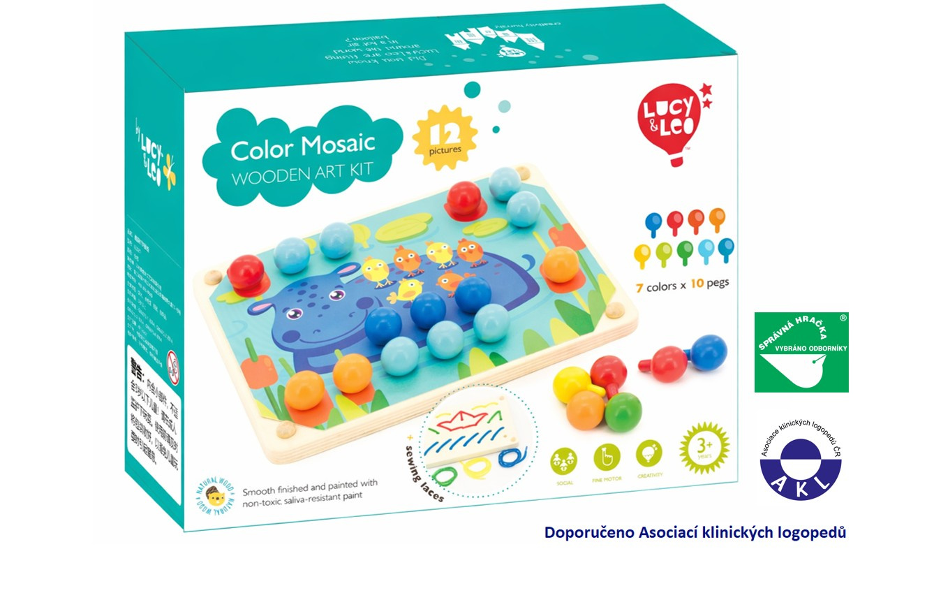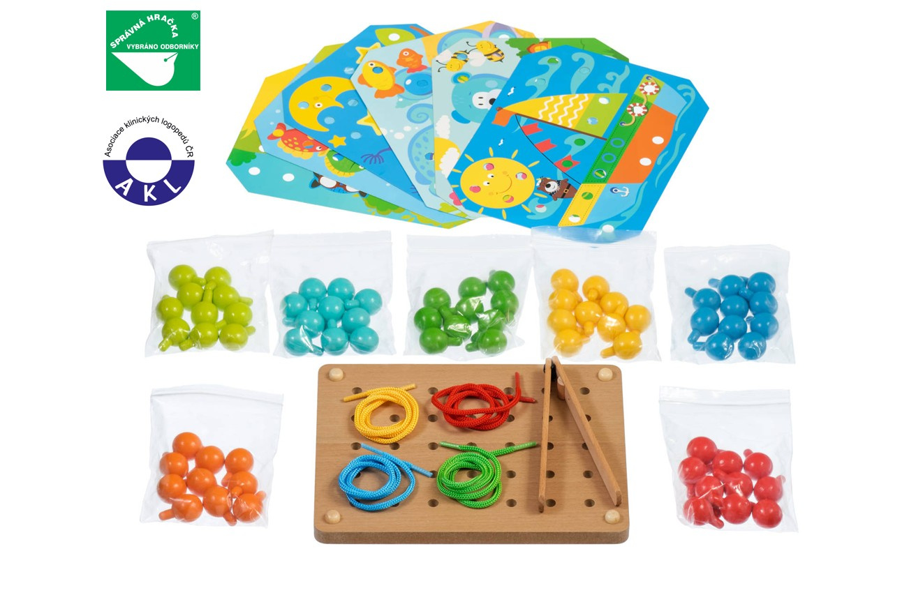 Lucy & Leo 321 Mozaika s pinzetou a vyšívání - dřevěný herní set s předlohami