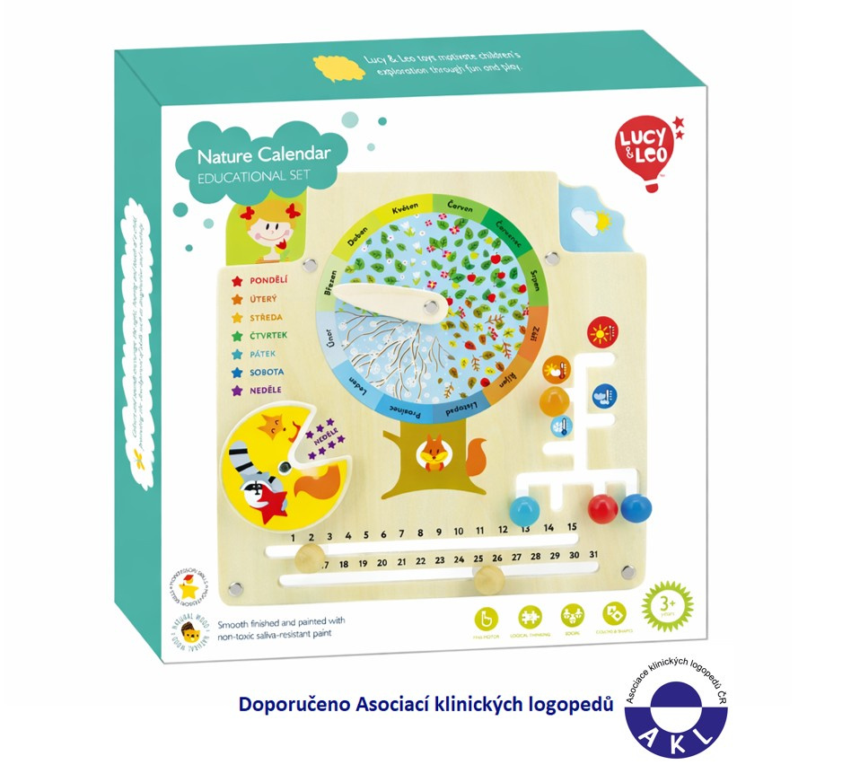 Kalendář přírody je dřevěná vzdělávací hračka, která seznamuje dítě ve věku od 3 let se zajímavostmi ročních období. Uprostřed dřevěné hrací desky je listnatý ovocný strom s pohyblivým ukazatelem, zobrazující 12 kalendářních měsíců. Každé roční období se vyznačuje svými vlastními znaky, takže dítě od raného věku bude spojovat zimu se zasněženými stromy a holými větvemi, jaro s květy a čerstvou zelení, léto s voňavým ovocem a podzim s opadáváním listů. Kromě ročních období se dítě naučí poznávat i dny v týdnu, počet dní v měsíci, rozpoznat příslušné variabilní teploty v jednotlivých ročních obdobích, povětrnostní podmínky a nebo zvolit vhodné oblečení do daného počasí. Hračka rozvíjí motorické dovednosti a logické myšlení. Balení obsahuje hrací desku s různými hracími prvky. Tato hračka je označována jako Montessori pomůcka.