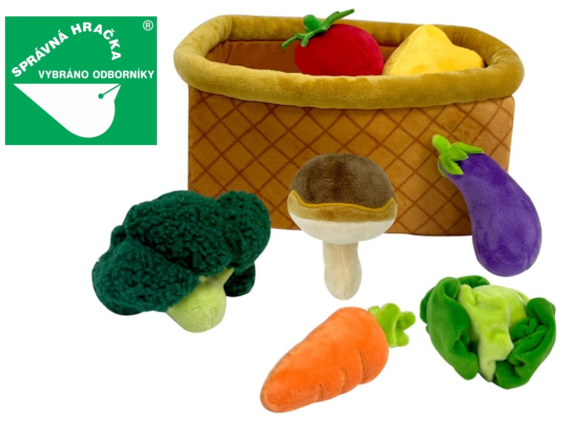 Plyšový košík se zeleninou a houbou je nezbytným doplňkem při hraní si na pěstování zeleniny, nebo jVíce
