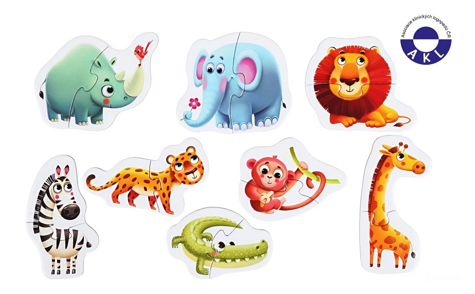 Puzzlika 14774 Africká zvířátka - naučné puzzle 8 zvířátek - 16 dílků