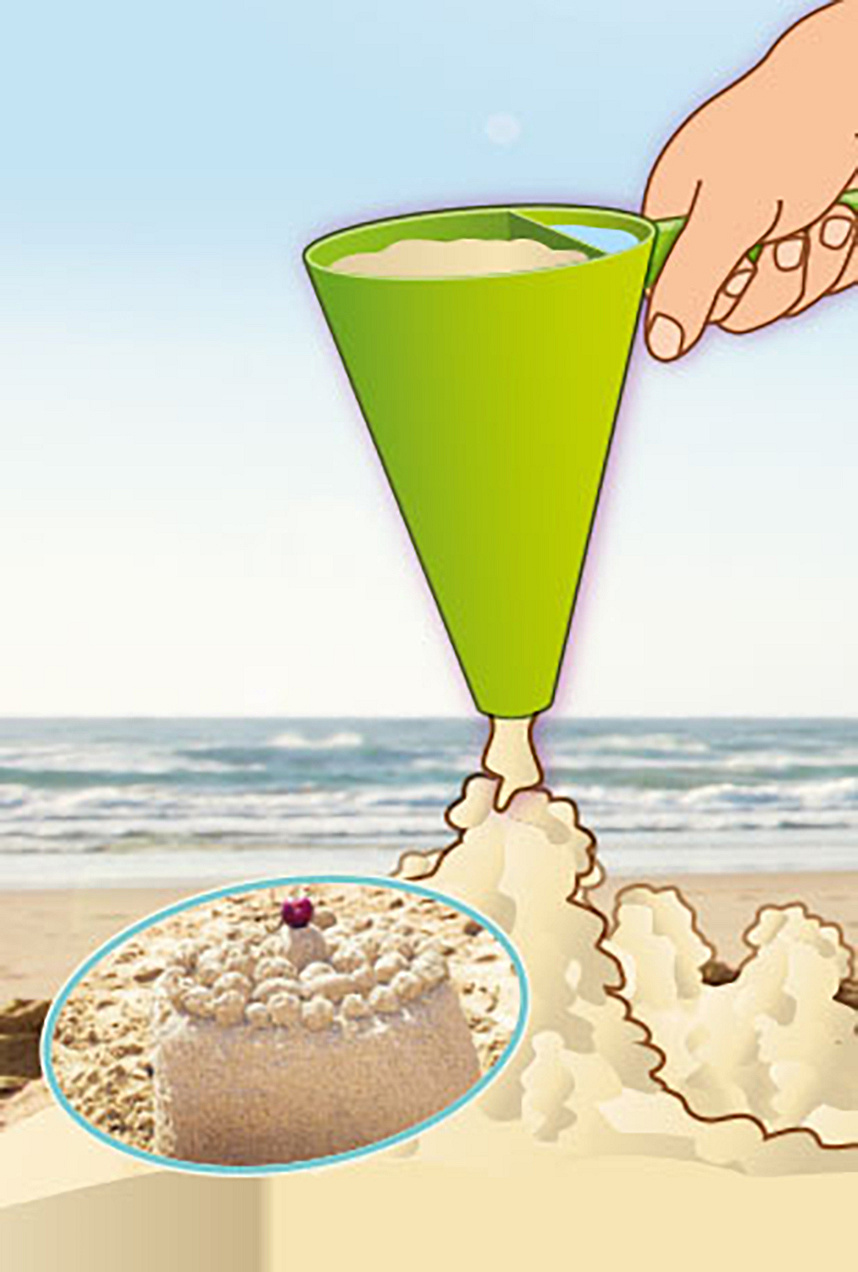 3dílná sada na písek, vyrobená z kvalitních plastů v Itálii. Obsahuje: 1 dekoraterský trychtýř pro míchání písku a vody a vytáření kreativních muffinů a jiných výtvorů, 1 tvořítko ve tvaru bábovky, 1 kopečkovač na zmrzlinu. Baleno v síťce o rozměrech 11 x 18x 17 cm. Váha: 0,122 kg. Doporučený věk od 10 měsíců.