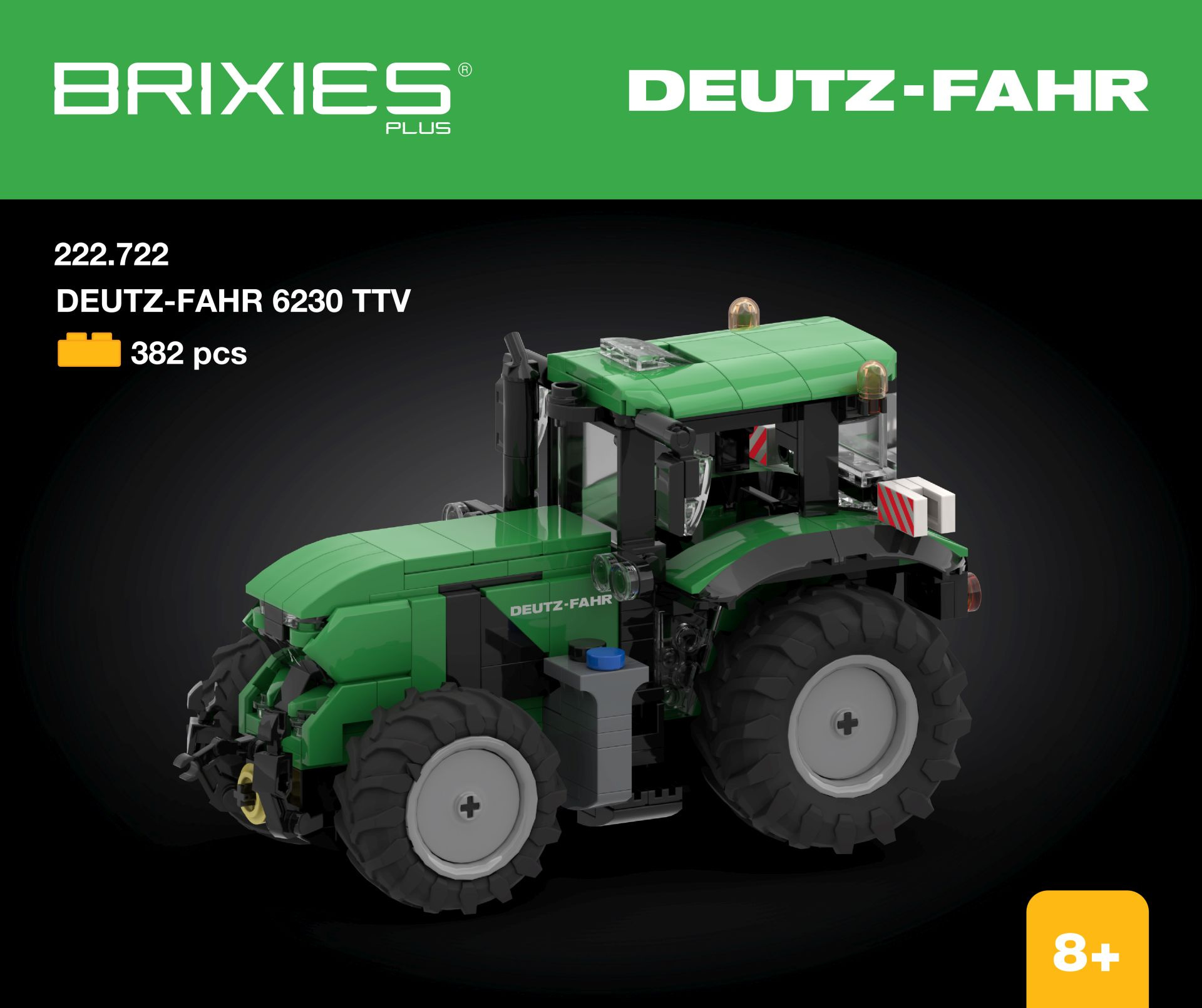 Sestavte si vlastní traktor DEUTZ-FAHR 6230 TTV ze stavebnice BRIXIES Plus a poznejte, jak vypadá výkon a preciznost – v malém i velkém měřítku!