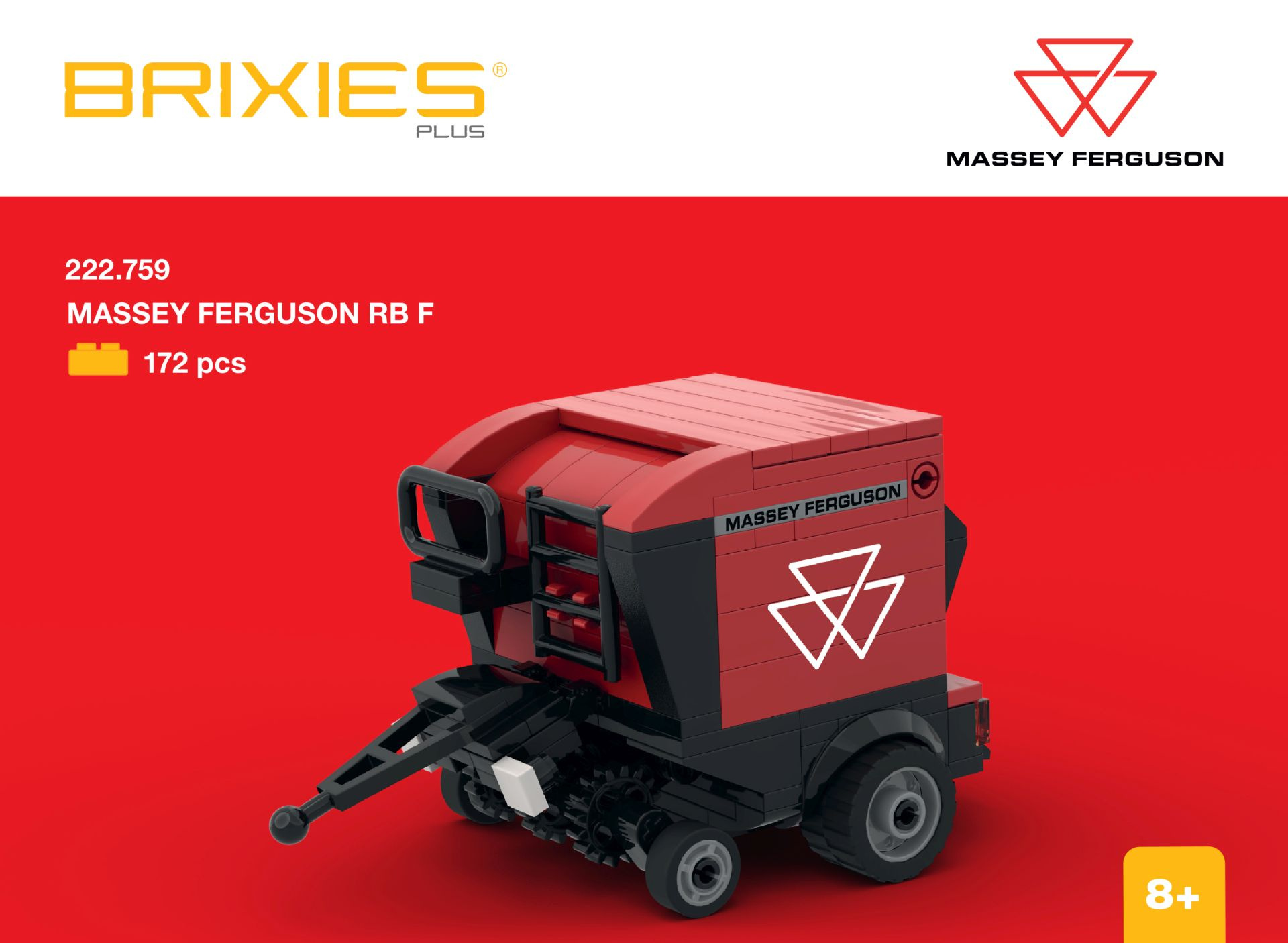 Objevte zábavu a kreativitu s 3D stavebnicí BRIXIES Plus Massey Ferguson RB F – lis na válcové balíky, 172 k! Tato detailně propracovaná stavebnice obsahuje celkem 172 dílků, ze kterých si nejenom děti, ale i dospělí mohou postavit model lisu na válcové balíky Massey Ferguson RB F. Po sestavení dosahuje model rozměrů: cca 14 x 7,7 x 8 cm (d x v x š). Tato stavebnice je inspirovaná skutečným strojem, což zajišťuje věrné zachycení jeho charakteristických prvků a jedinečného designu. Níže naleznete další zajímavé informace a technické detaily.