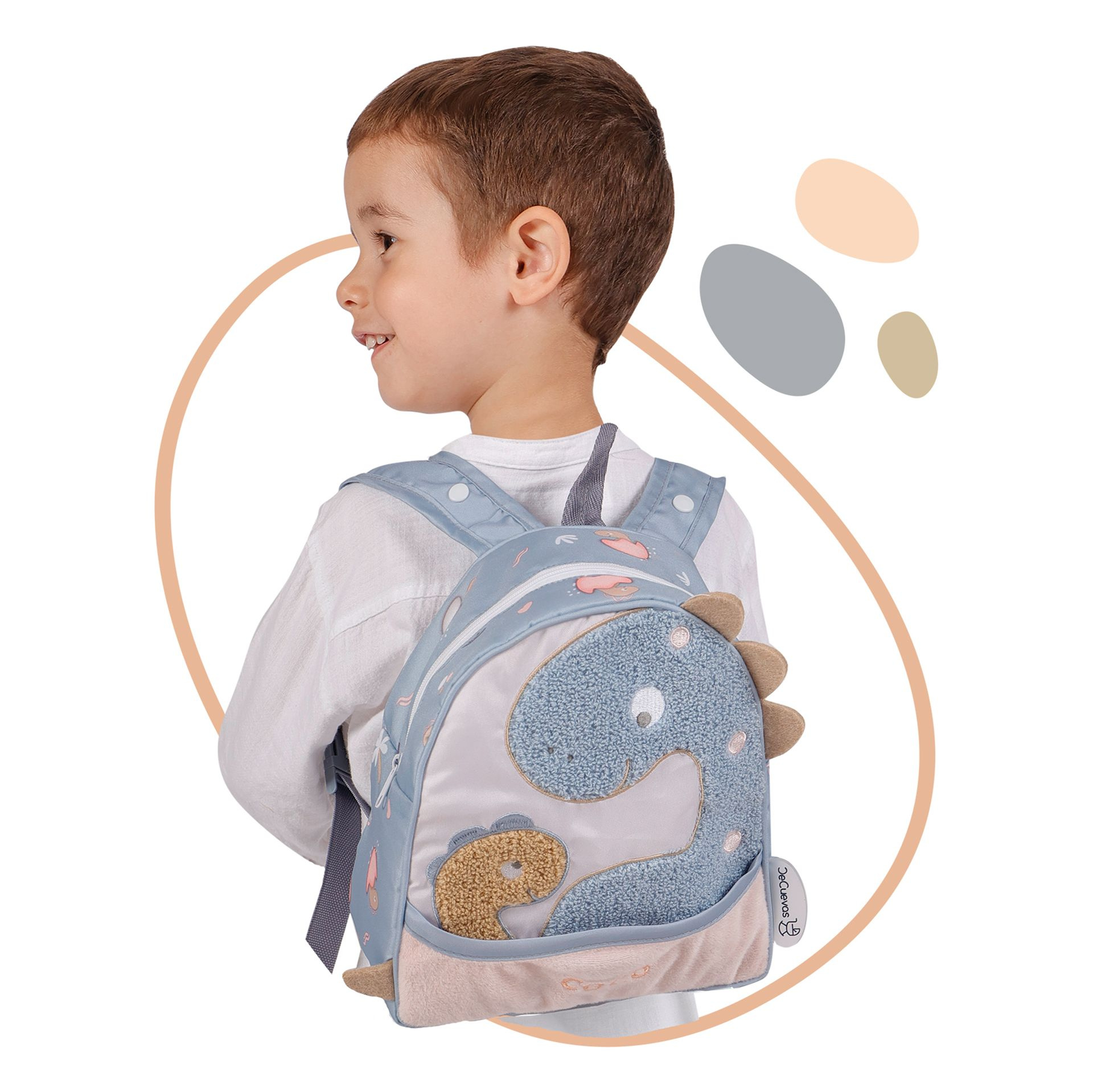 DeCuevas 10580 Dětský batůžek COCO 2024, ze stejnojmenné kolekce, která je novinkou roku 2024, se výborně hodí na výlety, do školky, do kroužků nebo prostě kamkoliv. Všechny děti si s oblibou nosí svůj batůžek na zádech, do kterého si mohou schovat malou svačinku, oblíbenou hračku nebo různé drobnosti. V hravé kolekci COCO je dominantní obrázek dinosauří maminky se svým roztomilým mláďátkem, které nese na zadečku ještě vaječnou skořápku. Potisk malého dinosauříka na jemně holubičí šedomodré látce je základem celé kolekce, již zdobí prvky v pískové nebo narůžovělé barvě, která se promítá i do většiny nosných konstrukcí. Díky zakomponovaným drukům na ramenních popruzích se batůžek dá připevnit na madlo kočárku. Batůžek je vyrobený z polyesteru, je pratelný ručně ve studené vodě. Baleno v igelitovém obalu. Doporučený věk od 3 let.