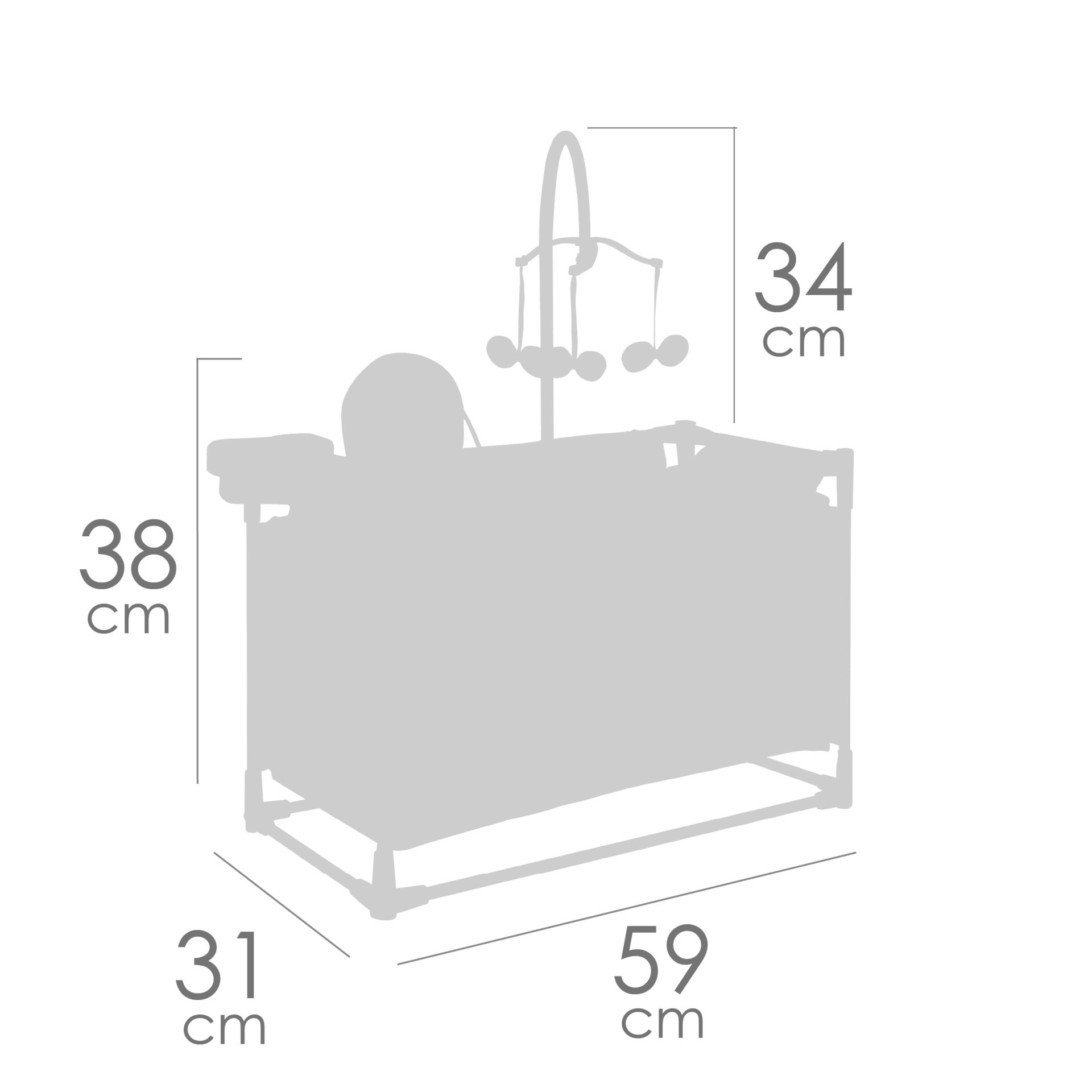• Rozměry postýlky: 59 x 31 x 38 cm (d x š x v)