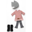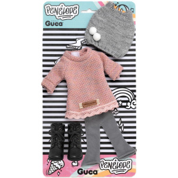 4dílný set: 3 kusy oblečení a botičky pro panenku Penelope velikosti 34 cm. Vyrobeno ručně ve Španělsku, baleno v igelitovém obalu na kartonové podložce. Doporučený věk od 3 let.