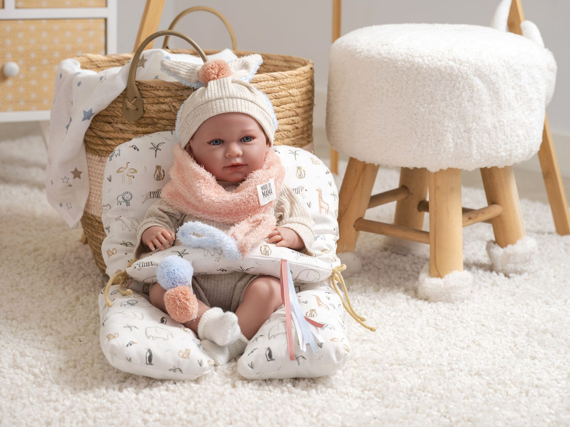 Mluvící miminko s měkkým látkovým tělem, které po zatlačení na hrudník začne říkat „mama“, „papa“ a vydávat reálný zvuk plačícího miminka. Ruce a nohy jsou k tělu přichyceny kloubem. Miminko je polohovací a může i sedět. Dudlík v balení slouží pouze jako doplněk. Velikost 42 cm. Ručně vyrobeno ve Španělsku, baleno v dárkové krabici. Doporučený věk od 3 let. K miminku je možné dokoupit další originální oblečení z nabídky Llorens pro miminka NEW BORN velikosti 40-42 cm nebo 43-45 cm. Součástí balení je 3 x knoflíková baterie LR44 s návodem na její výměnu. Baterie jsou spotřební zboží a proto jejich vybití není důvodem k reklamaci panenky.