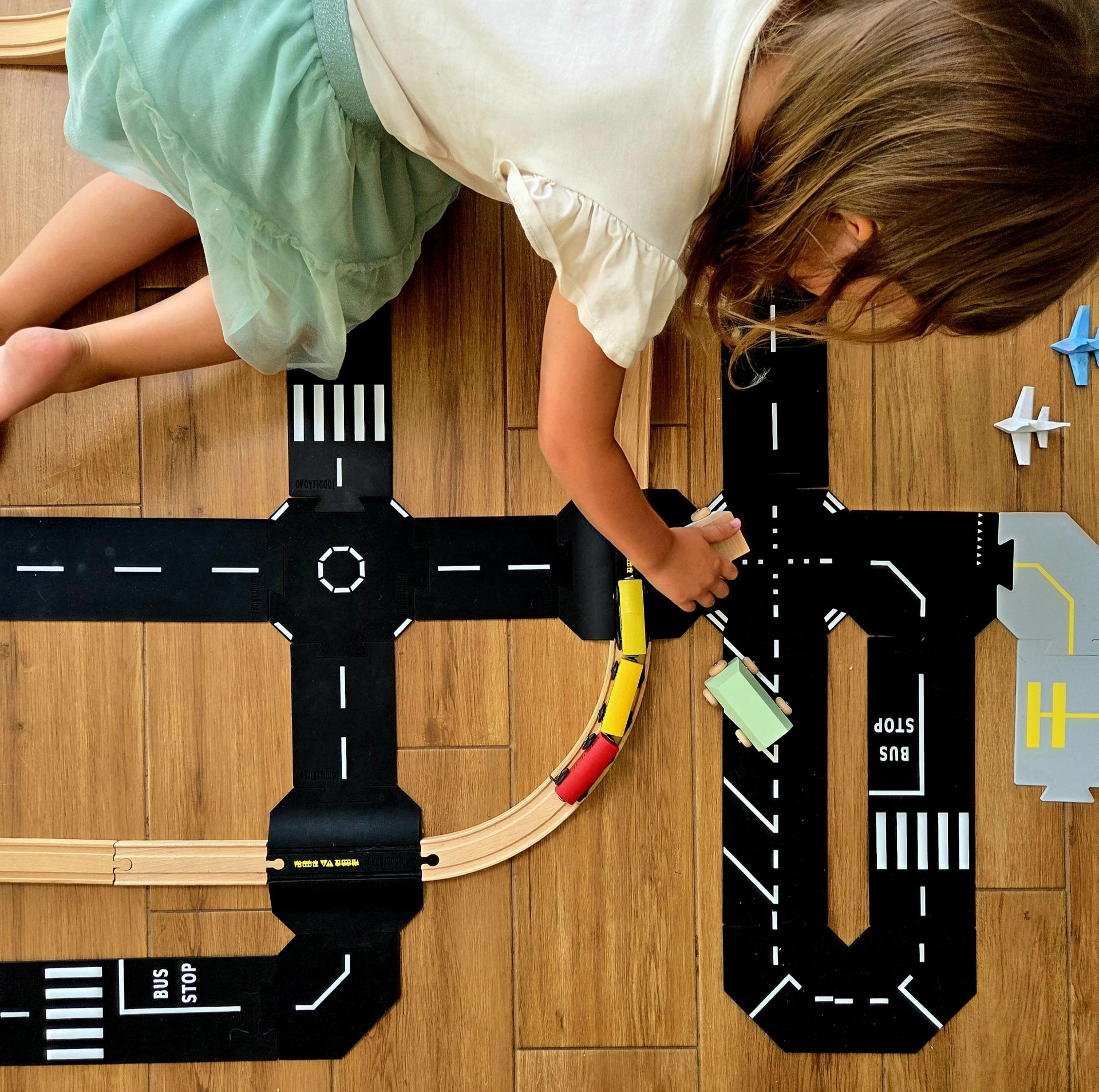 ŽELEZNIČNÍ PŘEJEZD S DOPLŇKY je větší rozšiřující sada, ve které je inovativní přejezdový prvek, který slouží k propojení sady MĚSTO nebo METROPOLE s dřevěnými kolejemi. Kompatibilní je třeba se značkou MAXIM nebo BRIO, což jistě nadchne většinu malých milovníků železnic a silničního provozu, kteří nyní se svými autíčky mohou snadno přejíždět přes oblíbené koleje. Další inovativní prvek této sady je oboustranní díl s X křižovatkou a malým kruhovým objezdem, který umožňuje snadné otočení nebo odbočení v rámci jedné silnice a tím velmi rozšiřuje herní možnosti a využití i menší sady MĚSTO. Například umístění dvou dílů s kruhovým objezdem na oba konce rovné silnice z ní udělá uzavřený okruh. Balení obsahuje 2 přejezdy, 2 rovné kratší silnice, 3 zatáčky a 1 oboustranný prvek s malým kruhovým objezdem na jedné straně a X křižovatkou na druhé straně. Vhodné pro děti od 1 roku.