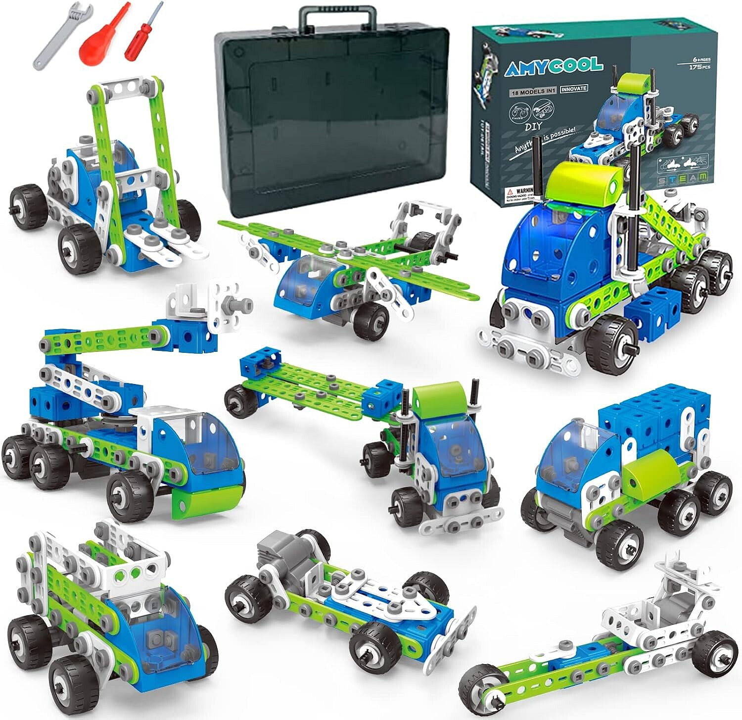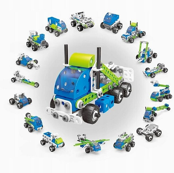 S přiloženými nástroji, jako je šroubovák, klíč a kleště, může dítě samo šroubovat konstrukce, čímž rozvíjí manuální dovednosti a logické myšlení.