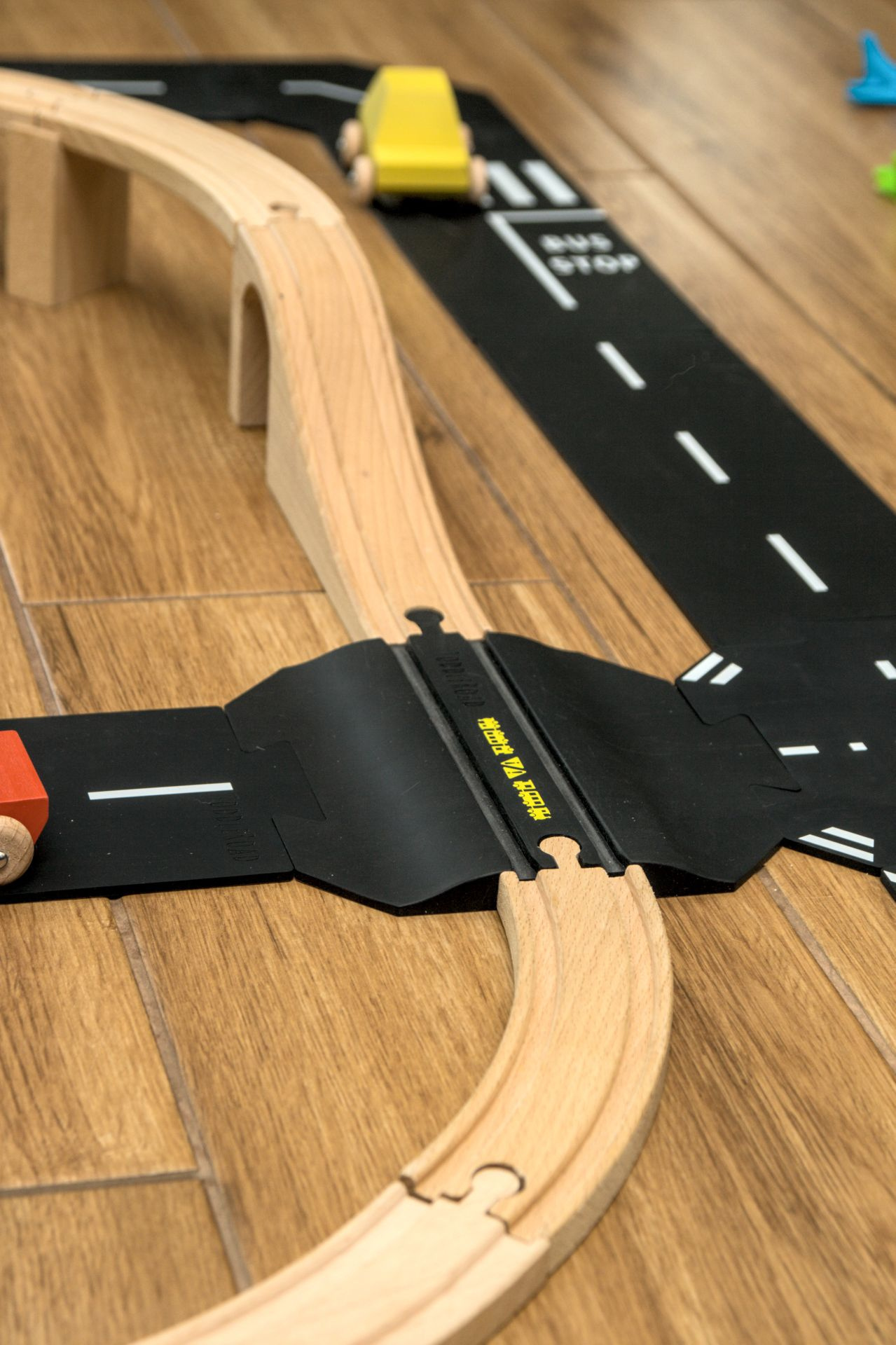 ŽELEZNIČNÍ PŘEJEZD SE SILNICÍ je malá rozšiřující sada, ve které je inovativní přejezdový prvek, který slouží k propojení sady MĚSTO nebo METROPOLE s dřevěnými kolejemi například značky MAXIM nebo BRIO, což jistě nadchne většinu malých milovníků železnic a silničního provozu, kteří nyní se svými autíčky mohou snadno přejíždět přes oblíbené koleje. Balení obsahuje 1 přejezd a 1 rovnou oboustrannou kratší silnici. Vhodné pro děti od 1 roku.